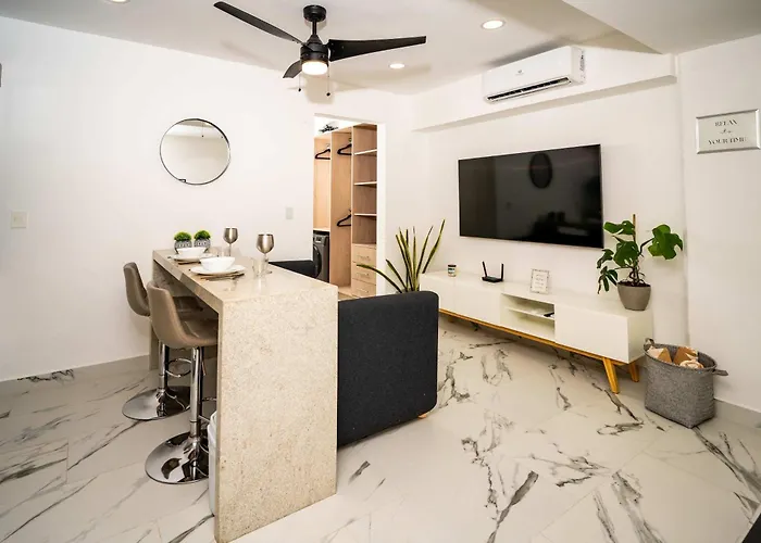 Das Apartment Encantador En La Mejor Ubicacion Cancún befindet sich in der Nähe von verschiedenen Attraktionen der Stadt: Estacionamiento KM 0 liegt unter anderem lediglich 5 Gehminuten von hier entfernt. Dieses 1-Zimmer-Apartment bietet Ausblicke auf die Stadt.